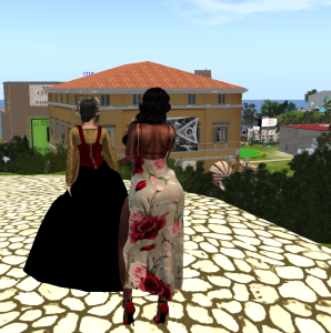 Scendiamo lungo il viale, allontanandoci dall’oscuro castello, dirigendoci verso un giardino fiorito, dove spiccano delle panchine rosse.