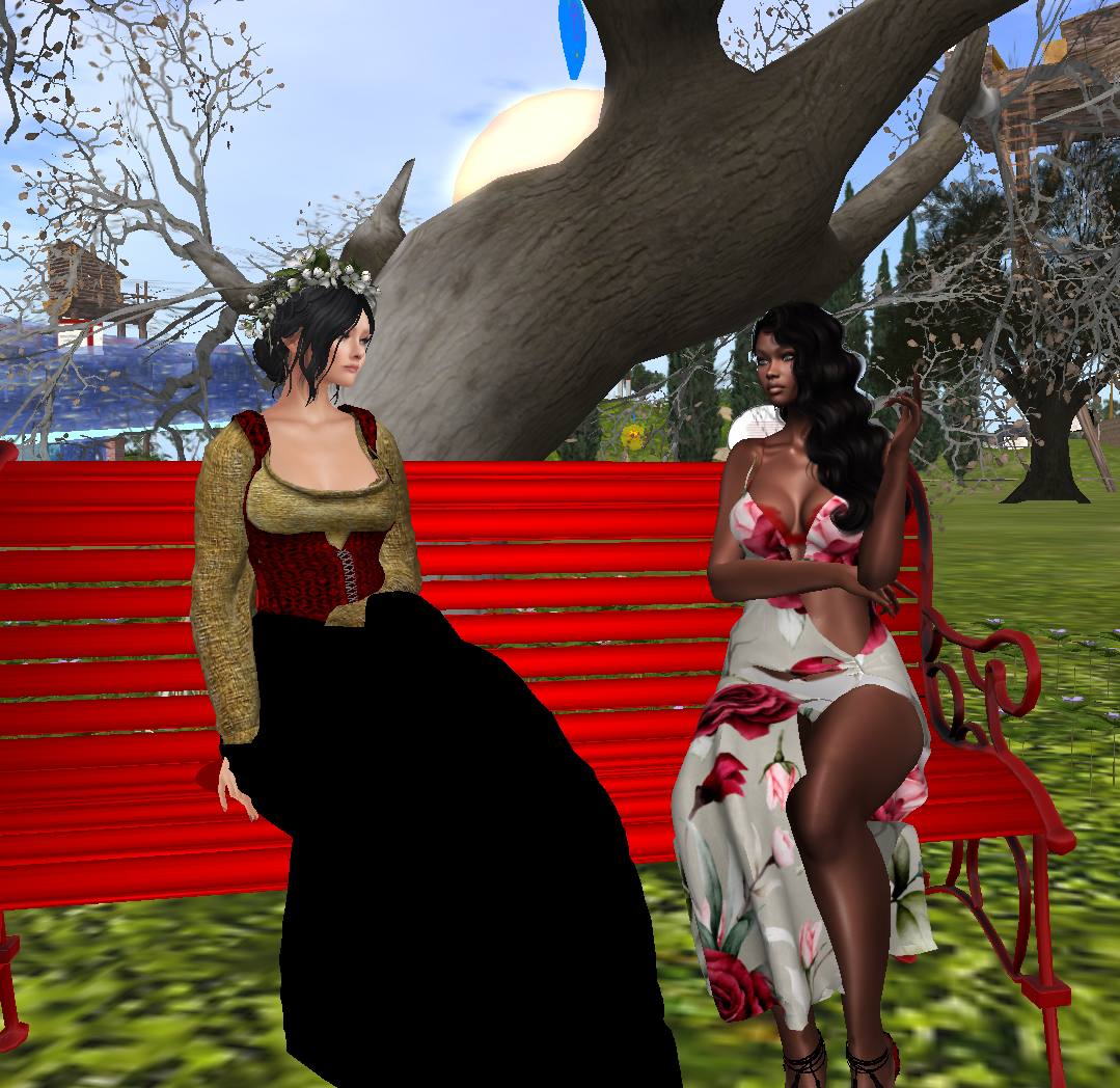 Scendiamo lungo il viale, allontanandoci dall’oscuro castello, dirigendoci verso un giardino fiorito, dove spiccano delle panchine rosse.